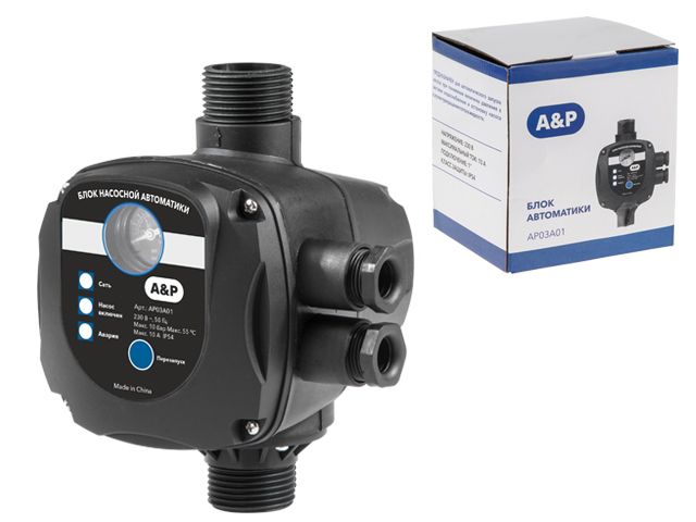Блок автоматики предназначен для автоматизации работы электронасоса, защищает его от работы без воды (сухого хода). Обеспечивает запуск при понижении давления (открытие кранов) или остановку при отсутствии водного потока в системе водоснабжения (закрытие кранов).