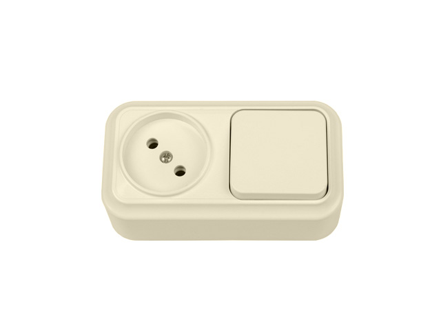 Блок выкл. 1 клав. + розетка (открытая, б/з) бежевая, Вариант, BYLECTRICA