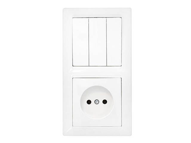 Блок выкл. 3 клав. + розетка (скрытая, б/з) белая, Стиль, Bylectrica