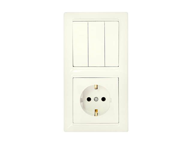 Блок выкл. 3 клав. + розетка (скрытая, с/з) бежевый, Стиль, BYLECTRICA