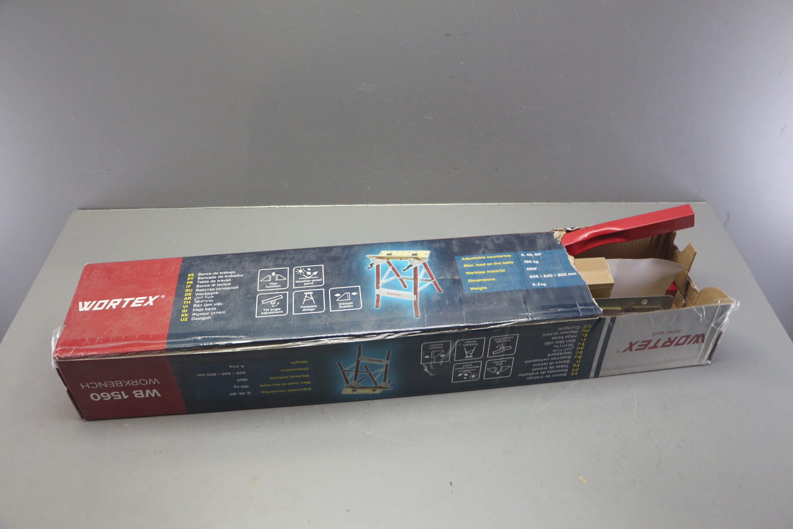 Верстак складной WORTEX WB 1560 в кор. МДФ, 605x640x800 мм, регулировка столешницы уцененный (0423