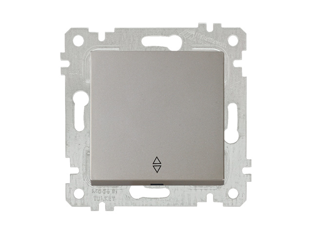 Выключатель проходной 1‑клав. (скрытый, без рамки, пруж. зажим) титан, RITA, MUTLUSAN
