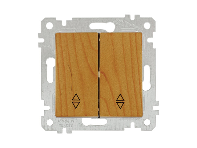 Выключатель проходной 2‑клав. (скрытый, без рамки, пруж. зажим) дуб, RITA, MUTLUSAN