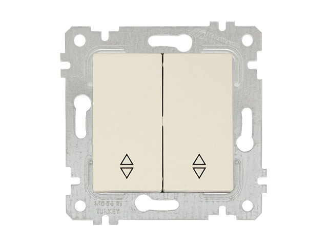 Выключатель проходной 2‑клав. (скрытый, без рамки, пруж. зажим) кремовый, RITA, MUTLUSAN