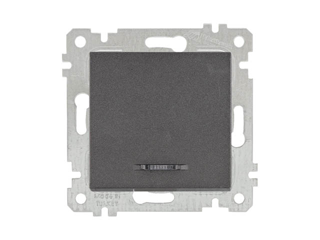 Выключатель 1‑клав. (с подсветкой, скрытый, без рамки, винт. зажим) дымчатый, RITA, MUTLUSAN
