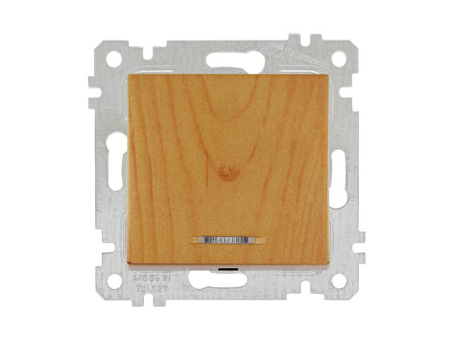 Выключатель 1‑клав. (с подсветкой, скрытый, без рамки, винт. зажим) дуб, RITA, MUTLUSAN