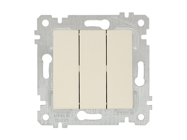 Выключатель 3‑клав. (скрытый, без рамки, пруж. зажим) кремовый, RITA, MUTLUSAN