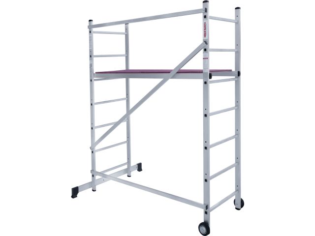 Вышка-тура строительная площадка 0,5х1,38 м НОВАЯ ВЫСОТА NV1411 (1411207) предназначена для проведения внутренних работ. Оборудована колёсами для удобства перемещения одним человеком. Легко устанавливается и обеспечивает высокий уровень комфорта. Стойки и перекладины из экструдированного алюминиевого профиля. Помост из влагостойкой фанеры с возможностью установки на разных уровнях. Регулировка траверсы для удобства работы вплотную у стены. Опорные наконечники из прочного пластика для устойчивого положения. Компактность при хранении и транспортировке. Практичность и внимание к каждой детали гарантируют безопасность работы на любой высоте.