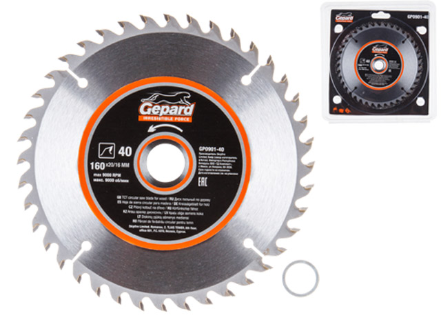 Диск пильный 160х20/16 мм 40 зуб. по дереву GEPARD