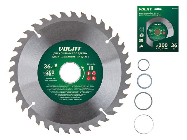 Диск пильный 200х32/​30 мм 36 зуб. по дереву ВОЛАТ