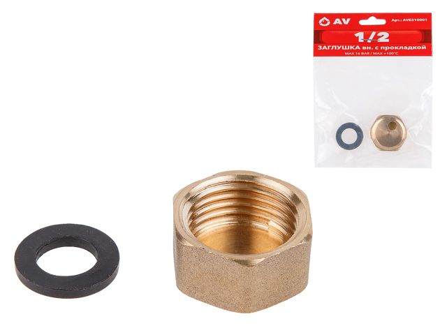 Заглушка 1/2″ вн. с прокладкой, AV Engineering (инд. упак.)