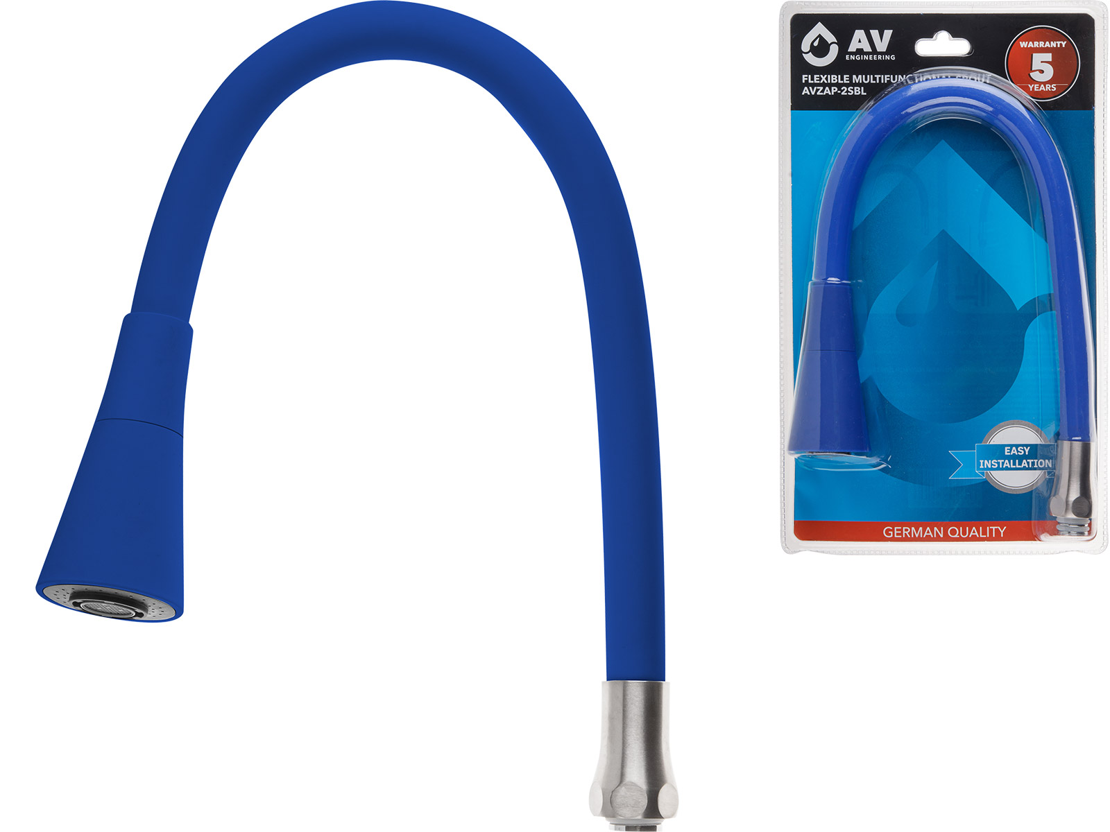Излив гибкий с двухрежимной лейкой синий для смесителя, AV Engineering