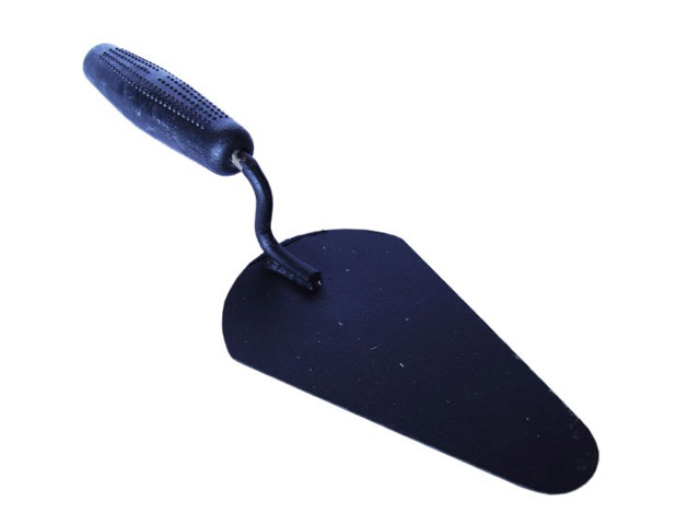 Кельма бетонщика ‑имеет рабочее полотно треугольной формы. Используется при кладке кирпича, а также для отмеривания и нанесения цементного раствора.