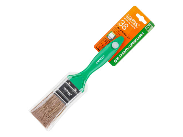 Тип и назна­че­ние: кисть плос­кая для выпол­не­ния раз­лич­ных внут­рен­них и наруж­ных маляр­ных работ на плос­ких поверх­но­стях. Спе­ци­аль­ный микс для средств дере­во­за­щи­ты, лазу­рей, про­пи­ток, анти­сеп­ти­ков, грун­то­вок, а так­же для ЛКМ на вод­ной осно­ве,