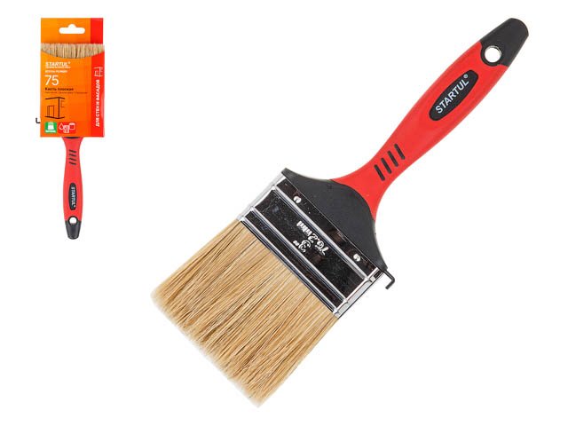Рукоять: двухкомпонентная эргономичная ручка, позволяющая выполнять длительные малярные работы, с отверстием для подвеса. Для большего удобства кисть дополнена крючком для крепления её на ёмкость с краской,