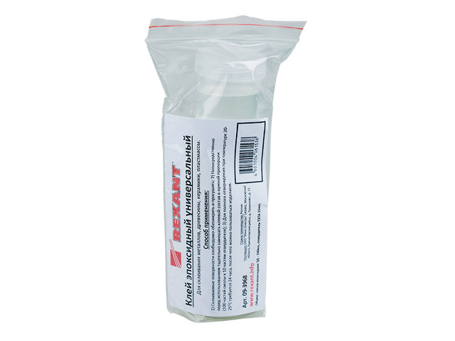 Клей эпок­сид­ный уни­вер­саль­ный (смо­ла­о­твер­ди­тель) 110 мл REXANT пред­на­зна­чен для скле­и­ва­ния метал­лов, кам­ня, бето­на, пла­сти­ка, дре­ве­си­ны, кера­ми­ки или фар­фо­ра, а так­же для вырав­ни­ва­ния поверх­но­стей или избав­ле­ния от трещин.