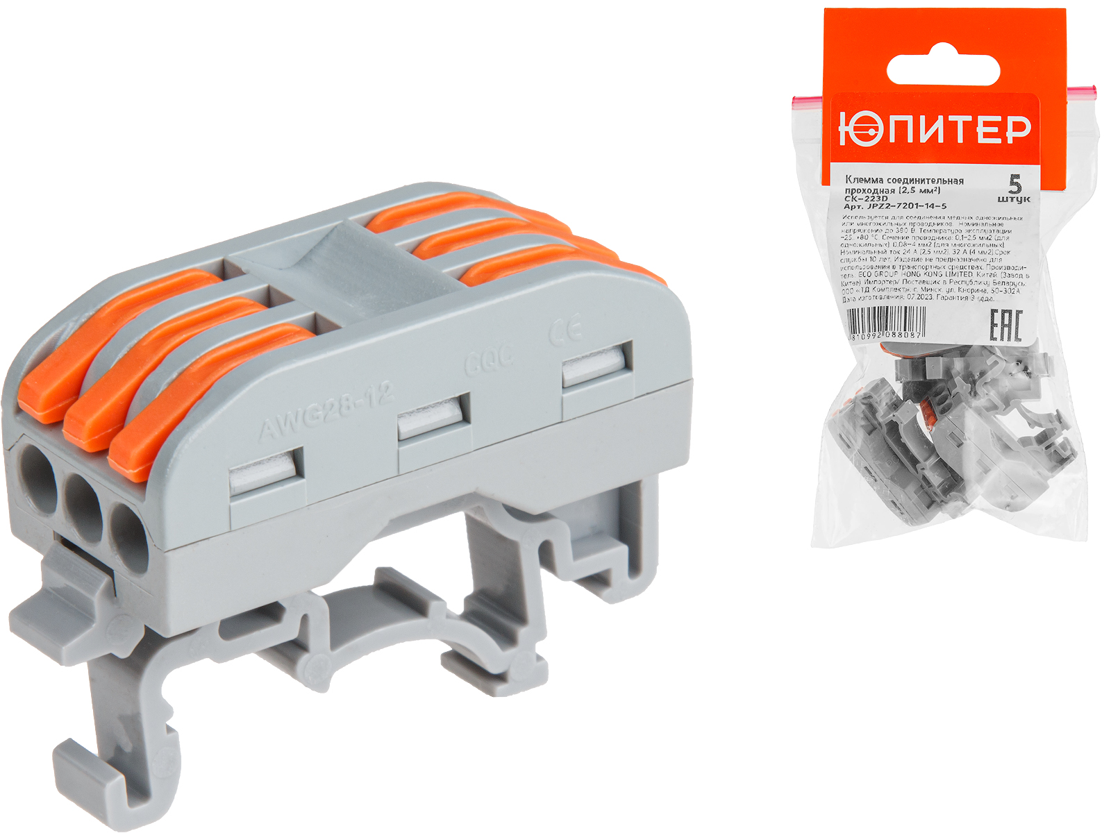 Клемма соединительная проходная СК-223D (2.5 мм2) (5 шт) ЮПИТЕР