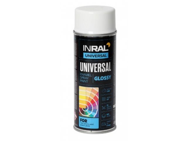 Краска-эмаль аэроз. универсальная белый глянец INRAL 400мл (9003)