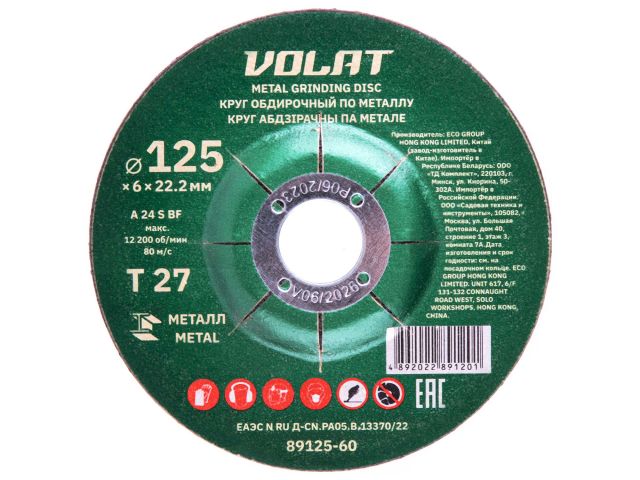 Круг обдирочный 125х6x22.2 мм для металла ВОЛАТ