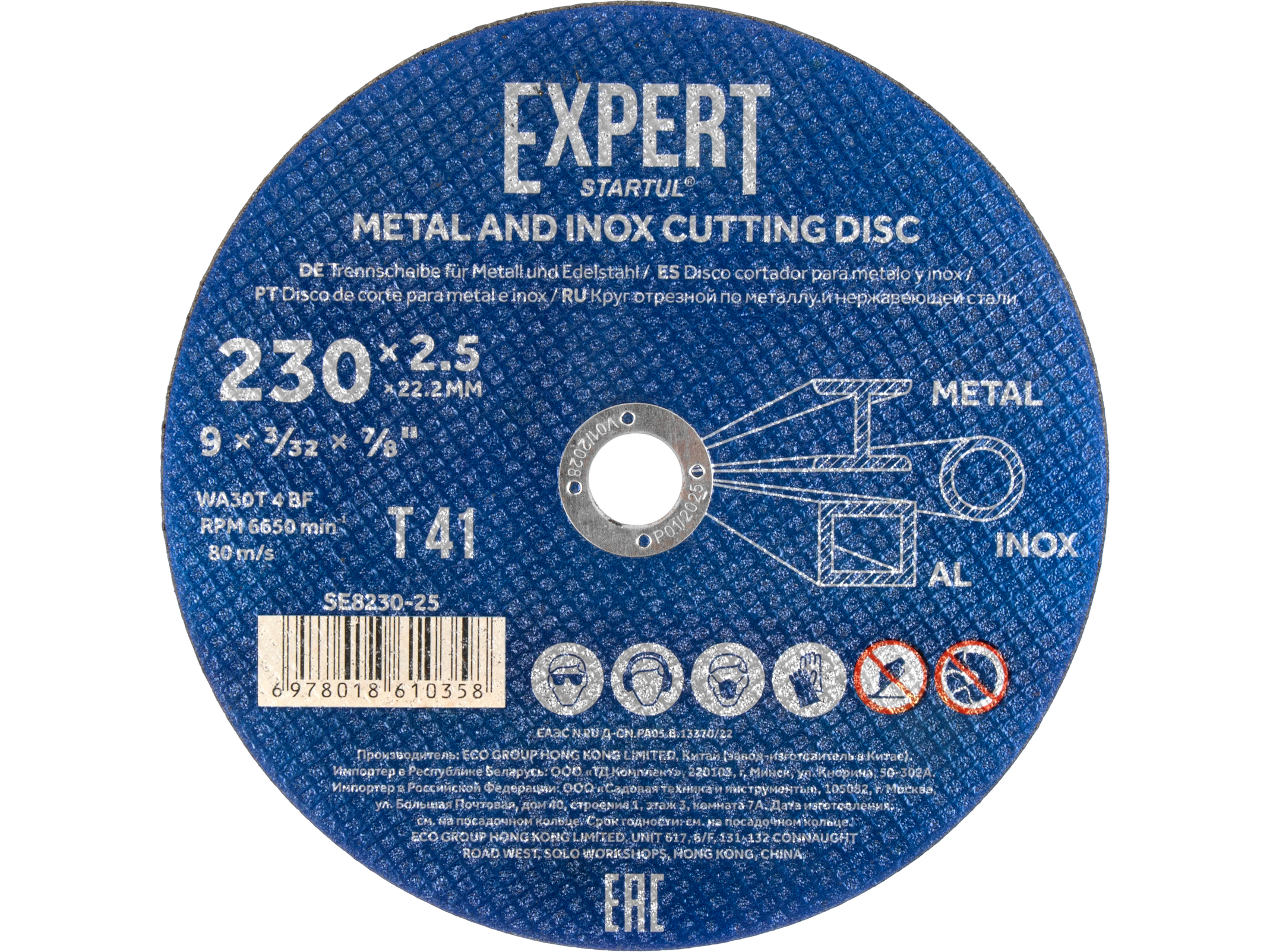 Тип: круг отрезной по металлу, нержавеющей стали и алюминию для промышленного и профессионального использования,