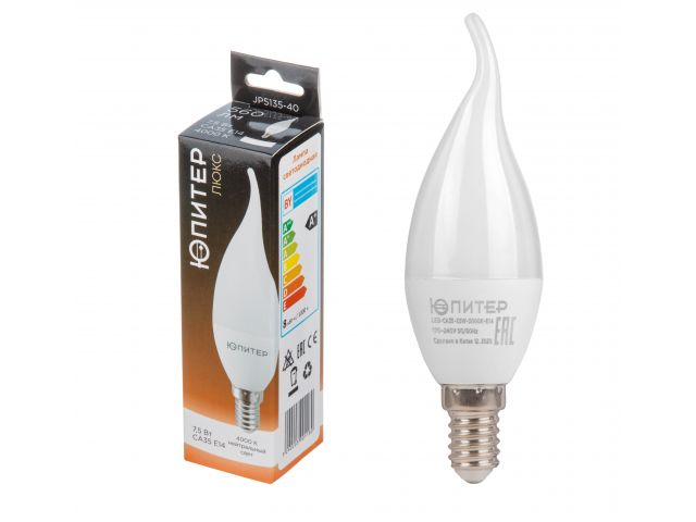Лампа светодиодная CА35 СВЕЧА НА ВЕТРУ 7,5 Вт 170–240В E14 4000К ЮПИТЕР ЛЮКС