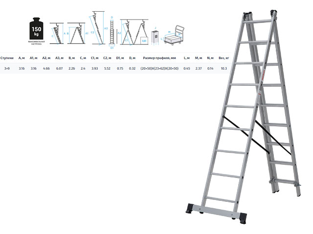 Верхняя секция легко снимается для использования в качестве отдельной приставной лестницы.