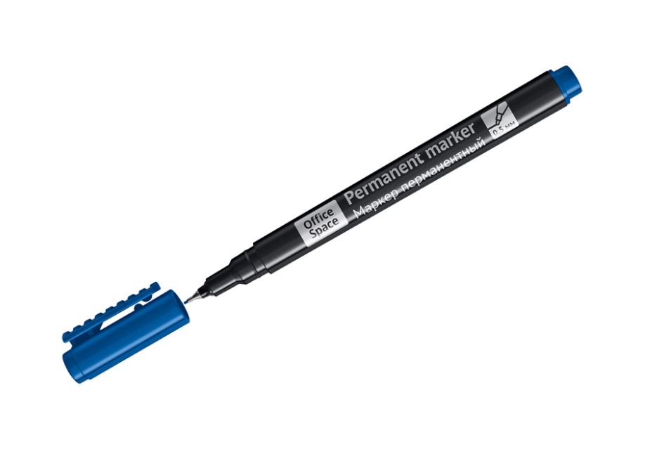 Маркер перманентный OFFICESPACE синий (270906) подходит для письма на любых поверхностях. Чернила на спиртовой основе. Плотный колпачок надежно предотвращает высыхание. Цвет колпачка соответствует цвету чернил. Металлический игольчатый пишущий узел обеспечивает тонкую ширину линии 0,5 мм. Подходит для письма на CD/DVD дисках. Длина письма 120–150 м. Длина маркера с колпачком 135 мм, без колпачка 125 мм, диаметр корпуса 10 мм.