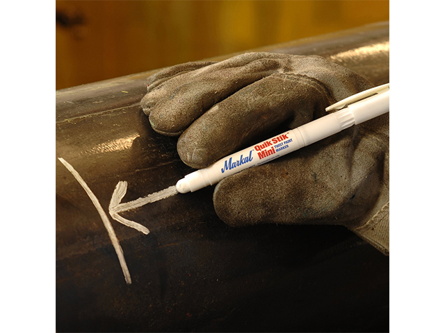 Quik Stik Mini ком­пакт­ный мар­кер с твер­дой крас­кой в пла­сти­ко­вом кор­пу­се иде­аль­но под­хо­дит для тон­кой мар­ки­ров­ки на глад­ких и шеро­хо­ва­тых поверх­но­стях. Это умень­шен­ная вер­сия Markal Quik лег­ко поме­ща­ет­ся в кар­ман или пояс с инстру­мен­том. Крас­ка ложить­ся ров­ным одно­род­ным сло­ем и не остав­ля­ет ком­ков, над­пи­си име­ют хоро­шо види­мые линии. Мар­ки­ров­ка устой­чи­ва к атмо­сфер­ным осад­кам, УФ-​излучению, не боит­ся про­ли­вов рас­тво­ри­те­лей, бен­зи­на, масел и дру­гих агрес­сив­ных веществ. Кор­пус из проч­но­го пла­сти­ка предот­вра­ща­ет стер­жень мар­ке­ра от повре­жде­ний и обес­пе­чи­ва­ет дли­тель­ное исполь­зо­ва­ние в про­мыш­лен­ных усло­ви­ях. Дизайн мар­ке­ра с вин­то­вым меха­низ­мом для выдви­же­ния стерж­ня обес­пе­чи­ва­ет чисто­ту рук, одеж­ды и инстру­мен­ты на про­тя­же­нии все­го исполь­зо­ва­ния маркера.