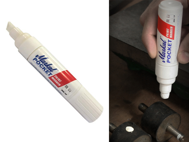 Markal Pocket – это карманный перманентный маркер на основе быстросохнущей жидкой краски, не содержащей ксилола и без запаха. Им можно наносить долговременную маркировку почти на любые поверхности. Благодаря его реверсивному наконечнику (клиновидному и кругло-плоскому) возможно наносить маркировку самых разных размеров. Плоская сторона наконечника разработана специально для хорошо видимой точечной маркировки.