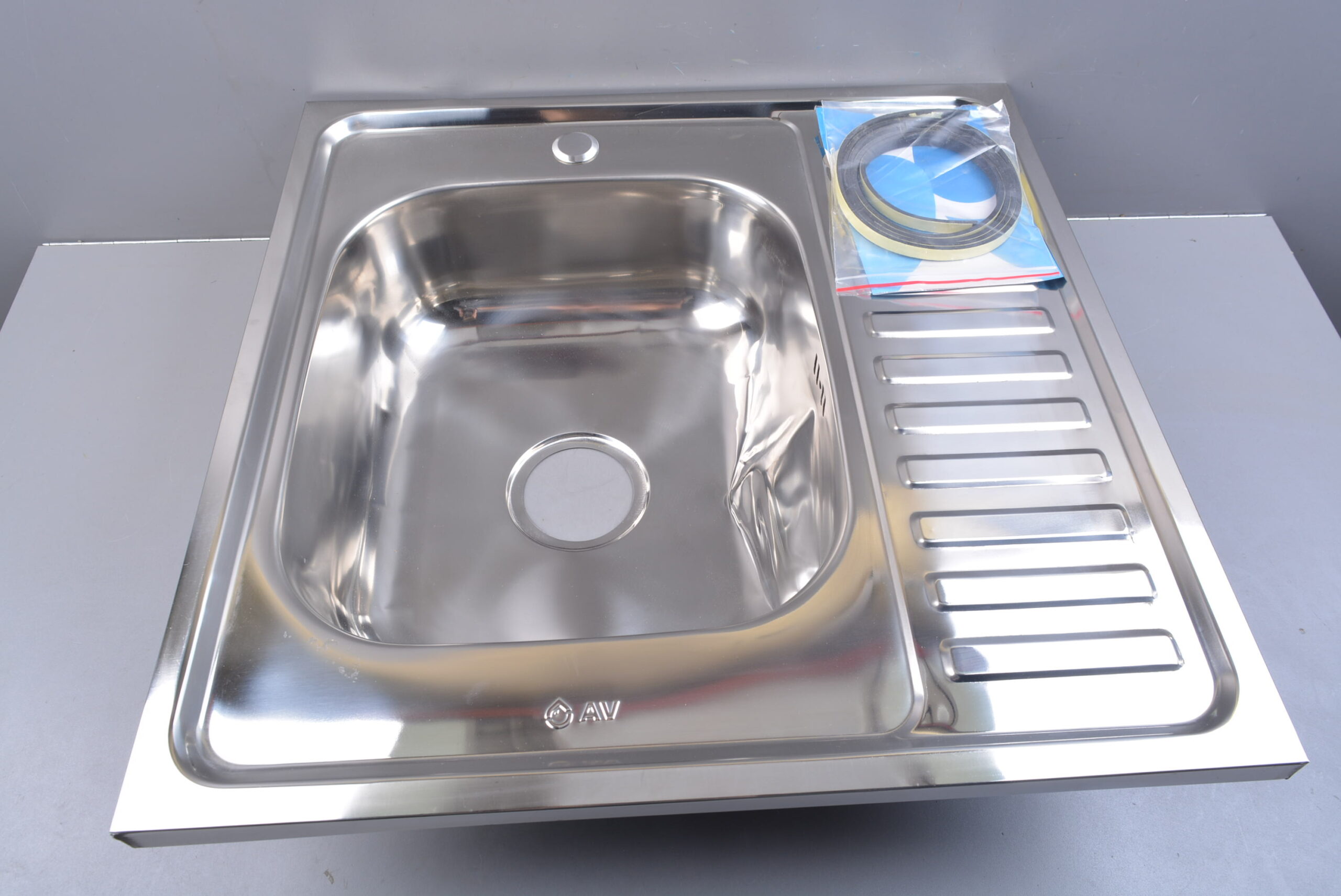 Мойка кухонная накладная Largo M 0,6 мм (SUS 201) полир. AV Engineering (сушилка с правой стороны)