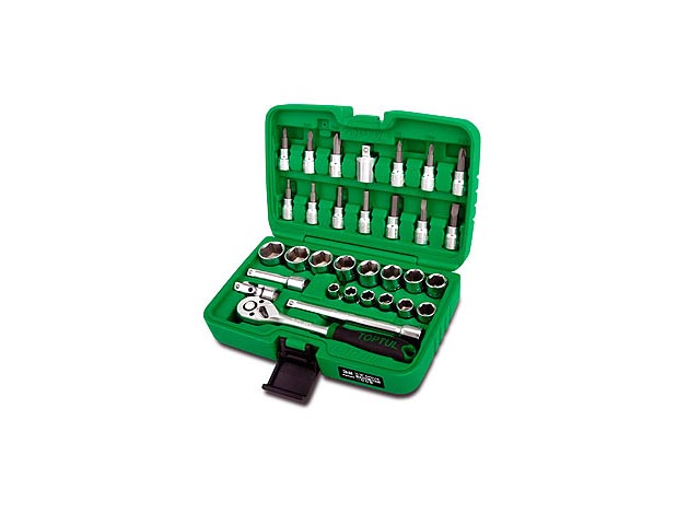 Набор торцевых головок и бит 38 TOPTUL состоит из 39 предметов.