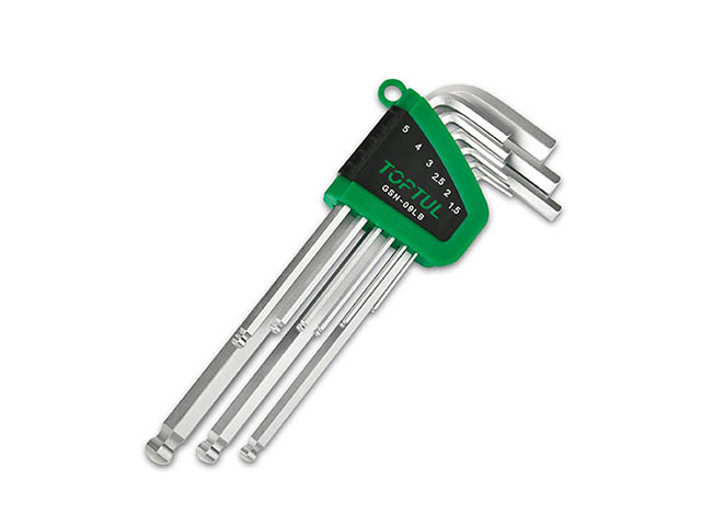 Г‑образные длин­ные шести­гран­ные клю­чи с шаром (9 шт.)