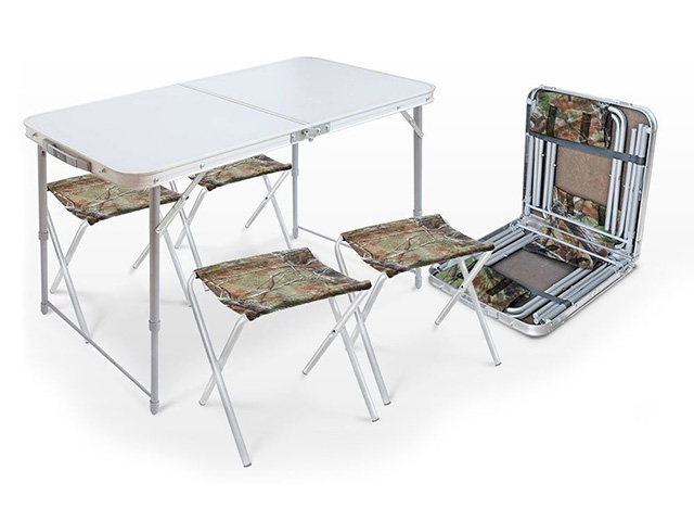 Набор NIKA ССТ-К2 это складной, многофункциональный стол с четырьмя стульями для отдыха на природе. Конструкция выполнена с использованием высококачественных материалов. Металлические трубки основания покрыты защитной эмалью, столешница выполнена из влагостойкого пластика, материал сиденья стульев имеет водоотталкивающую пропитку (не боится воды, легко чистится моющими средствами и устойчива к загрязнениям). Стол 102х50 см регулируется по высоте от 44,5 до 61 см. Допустимая нагрузка на стол 20 кг. Ширина сиденья 30х30 см. Расстояние до сиденья 31,3 см. Стол используют в качестве кейса, помещая внутрь складные стулья. Набор легко складывается, занимает минимум места при транспортировке. В сложенном виде имеет ручку для переноски. Габариты в сложенном виде 53х52,5х7 см.