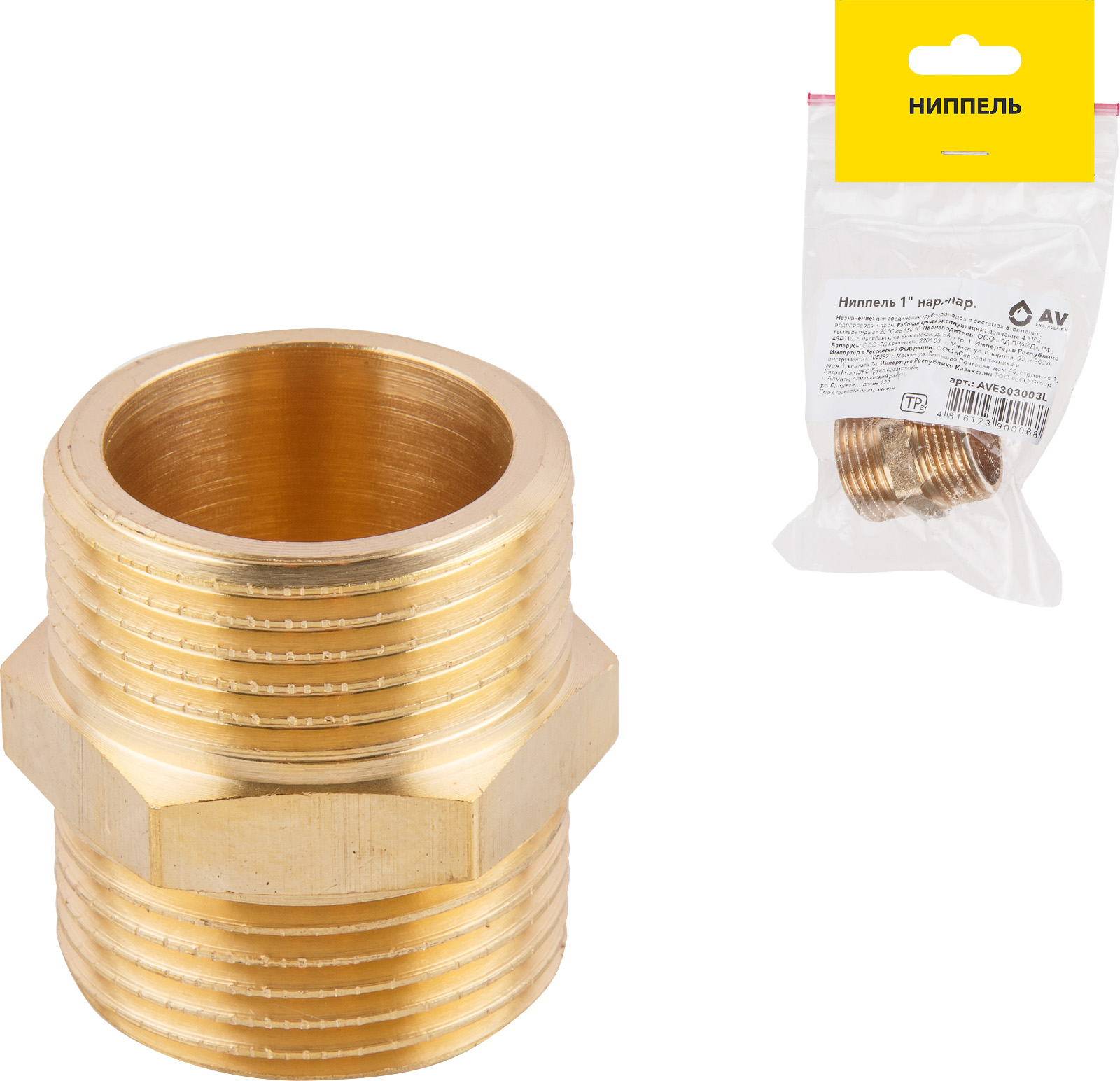 Ниппель 1″ нар.-нар., AV Engineering (инд. упак)