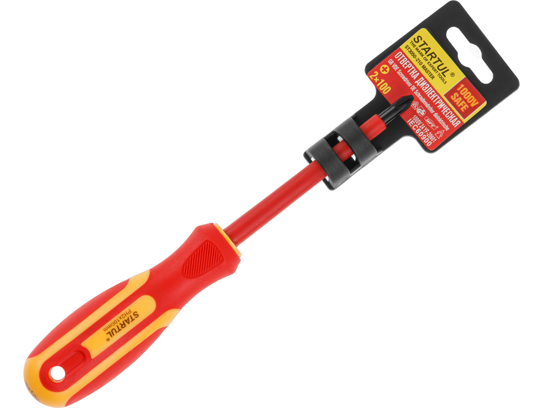 Назначение: отвертка диэлектрическая PH2х100мм для монтажа и демонтажа резьбовых соединений, находящихся под напряжением до 1000V,