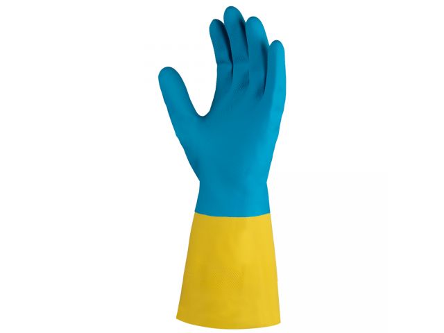 Перчатки К80 Щ50 неопреновые Atom Duo хозяйственно-промышленные, р‑р 8/M желто-голубые, JetaSafety