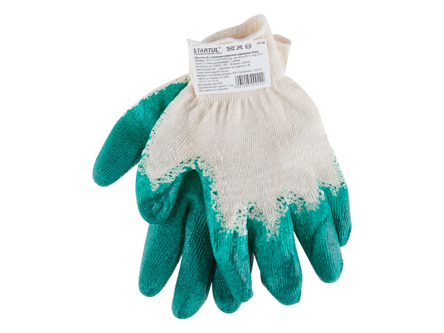 Перчатки х/​б, латексное покрытие (одинарный облив), 13 класс STARTUL