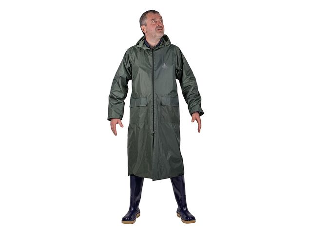 Плащ прямого силуэта с рукавами реглан. Притачной капюшон со шнуром, состоит из 3‑х частей и более эргономичен. Застёжка на «витой», более надёжной молнии и внутренней ветрозащитной планкой, что гарантирует высокую защиту от влаги. Проклеенные швы 100% защищают от «протечек». Манжеты на рукавах это дополнительная защита от протекания при активном движении. Вентиляционные отверстия в области подмышечных впадин и кокетки комфортно выводят влагу из внутреннего пространства. Наличие шлицы в плаще придаёт свободу движения.