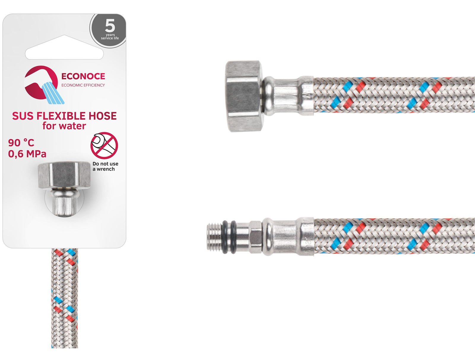 Гибкая подводка для воды от ECONOCE – это универсальное и практичное решение для надежного подключения сантехнических приборов (смесителей, унитазов, водонагревателей, стиральных и посудомоечных машин) к системе водоснабжения. Она обеспечивает герметичное соединение, простоту и скорость монтажа благодаря своей гибкости, а также компенсирует вибрации оборудования. Это позволяет легко установить прибор даже в стесненных условиях ванной, туалета или кухни.