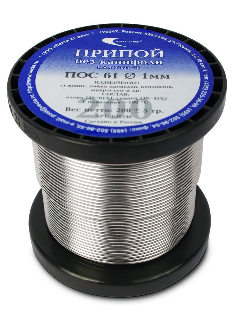Припой ПОС 61 проволока, катушка ф1мм (200г)