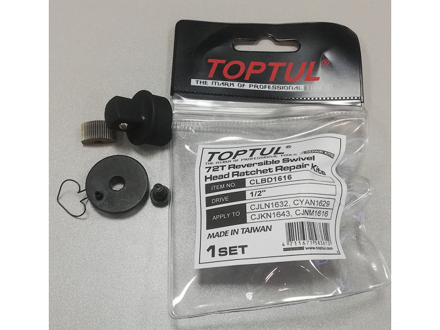 Ремкомплект TOPTUL предназначен для ремонта трещоток CJLN1632, CYAN1629, CJKN1643, CJNM1616. Рекомендуется для профессионального использования.