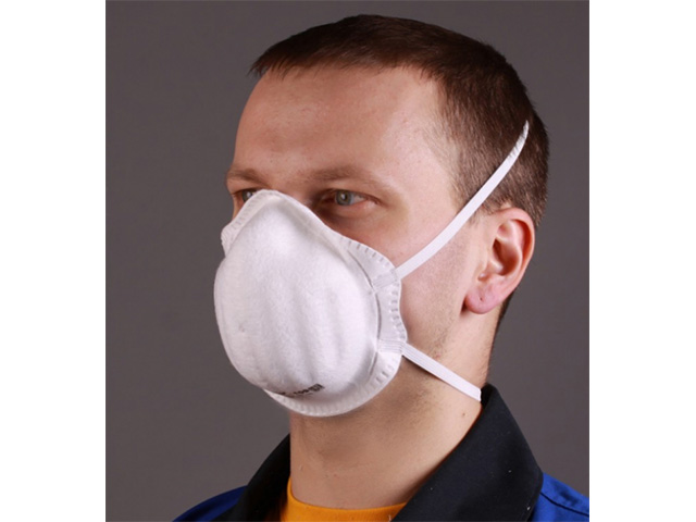 Фор­мо­ван­ный респи­ра­тор из нетка­но­го филь­тру­ю­ще­го мате­ри­а­ла, име­ю­щий эла­стич­ные лен­ты оголовья.