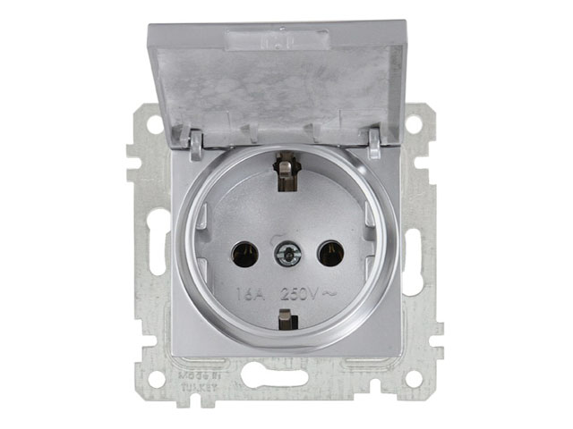 Розетка 1‑ая (скрытая, без рамки, с/​з, с крышкой) серебро, RITA, MUTLUSAN