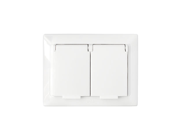 Розетка 2‑ая (cкрытая, с/​з, брызг. защ.) белая, Стиль, Bylectrica