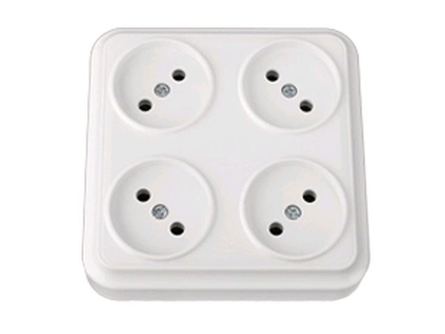 Розетка 4‑ая (открытая, б/з) белая, Вариант, BYLECTRICA