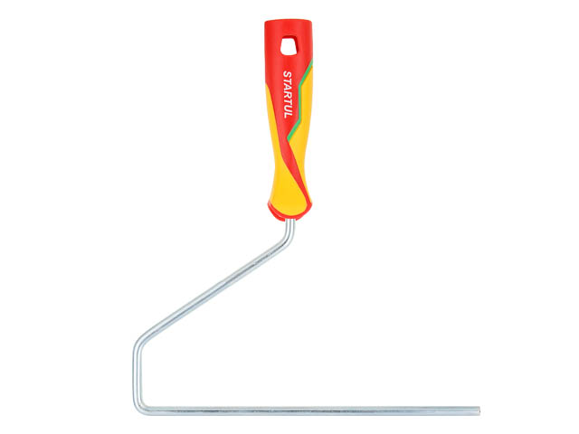 Описание: стальной изогнутый стержень, оснащенный эргономичной трехкомпонентной рукоятью. Технологическое отверстие в рукояти облегчает конструкцию инструмента и позволяет использовать телескопические стержни для покраски труднодоступных участков.