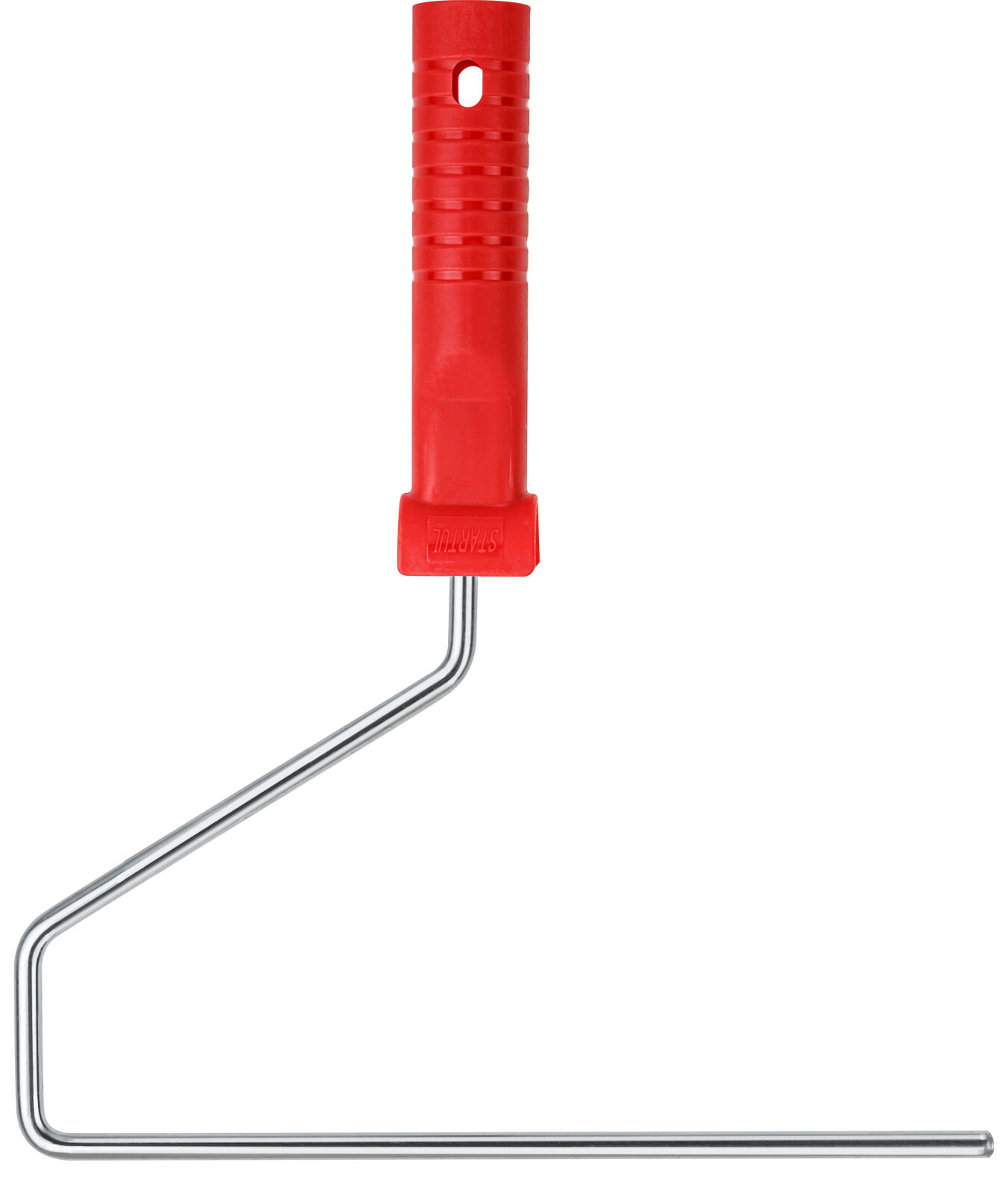 Описание: стальной изогнутый стержень, оснащенный эргономичной пластмассовой рукоятью. Технологическое отверстие в рукояти облегчает конструкцию инструмента и позволяет использовать телескопические стержни для покраски труднодоступных участков,