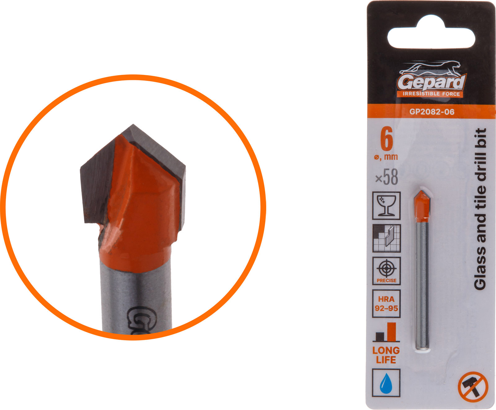 Сверло по кафелю/стеклу 6x58 мм ц/х GEPARD (GP2082-06)