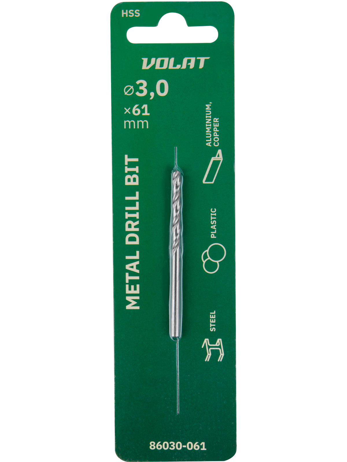 Сверло по металлу ц/х 3.0х33х61 мм HSS ВОЛАТ