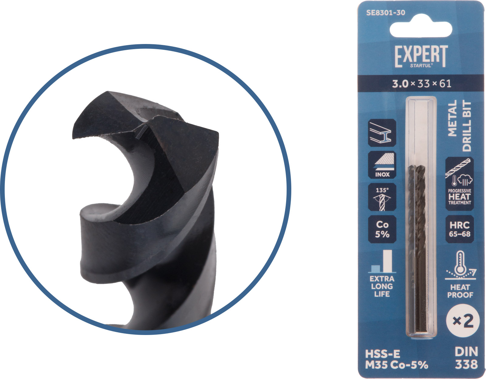 Сверло по металлу ц/х 3.0х33х61 мм HSS-Co, комплект из 2‑х шт Black EXPERT STARTUL